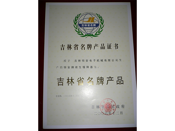 吉林省名牌產(chǎn)品證書